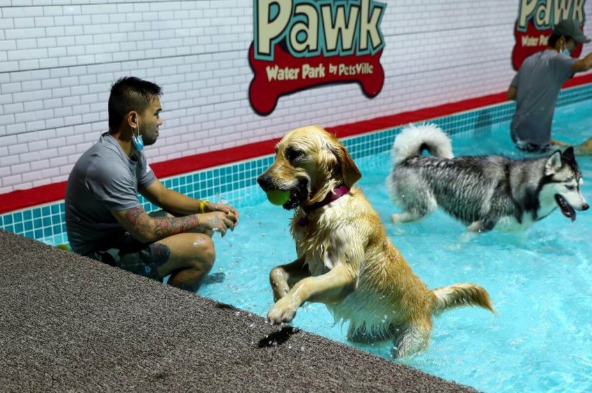 Дубайский необычный аквапарк, получивший название Aqua Pawk (paw по-английски означает «лапа»), дает возможность четвероногим питомцам освежиться в характерную для этих мест летнюю жару, когда находиться на улице днем практически невозможно.