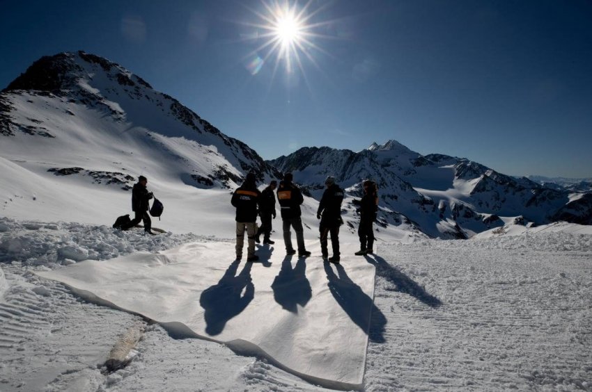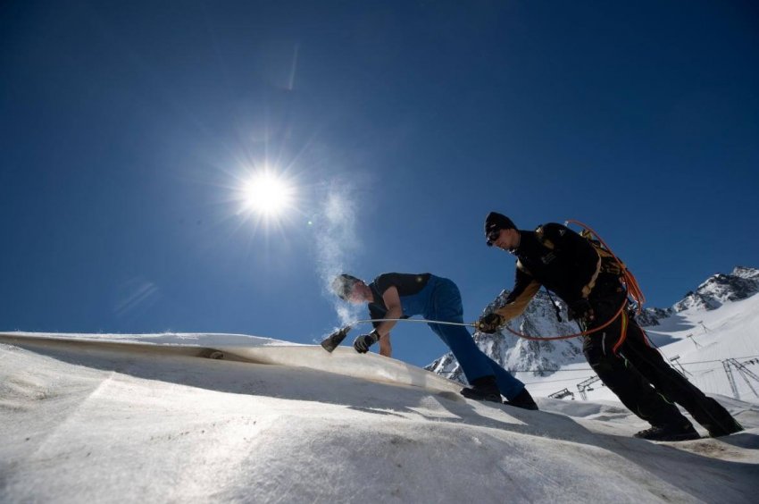 В связи с глобальным потеплением и изменениями климата альпийские ледники в последние десятилетия начинают свое таяние гораздо раньше и значительно быстрее, поэтому покрытие их специальными защитными тканями уже стало традицией для многих местных курортов.