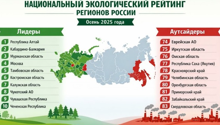 18 декабря 2025 года опубликован очередной «Национальный экологический рейтинг регионов Российской Федерации». Документ подготовлен Общероссийской общественной организацией «Зелёный патруль» и отражает состояние экологической ситуации в субъектах страны за период с 1 сентября по 30 ноября 2025 года.